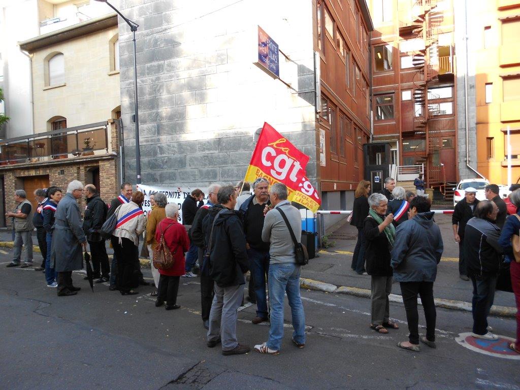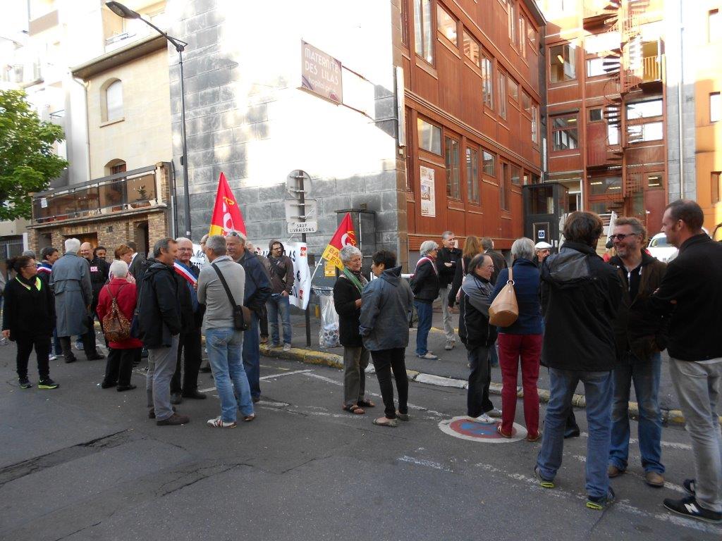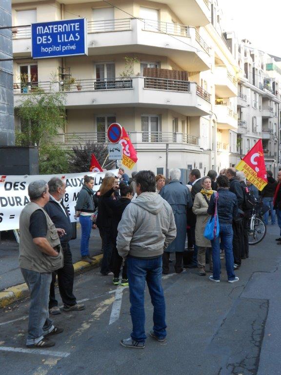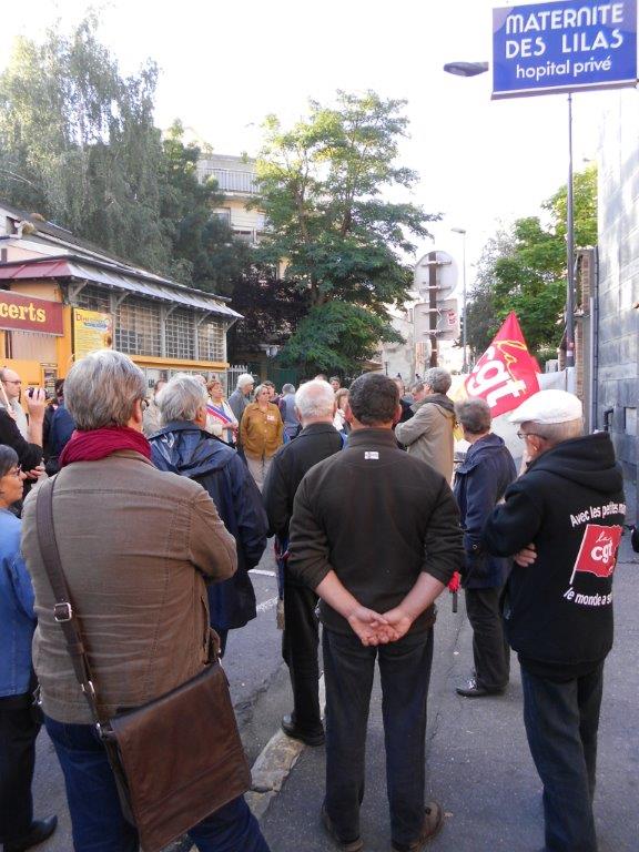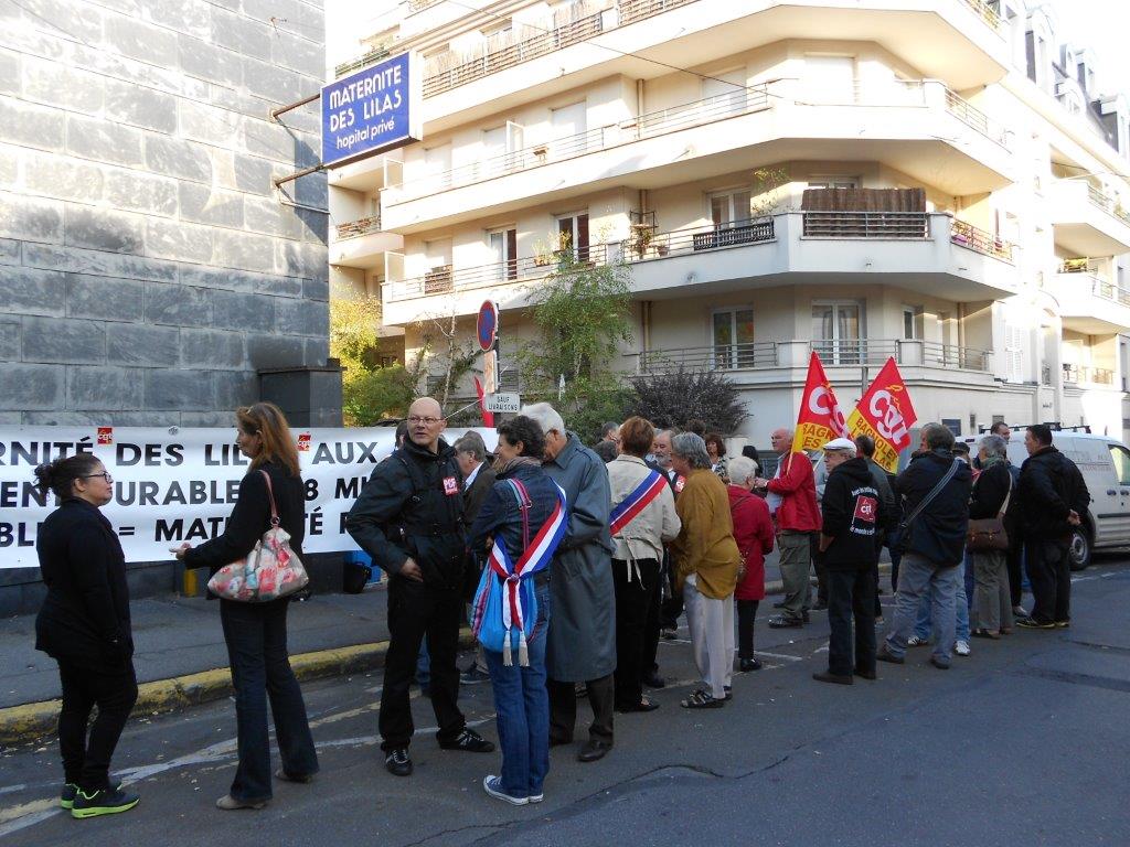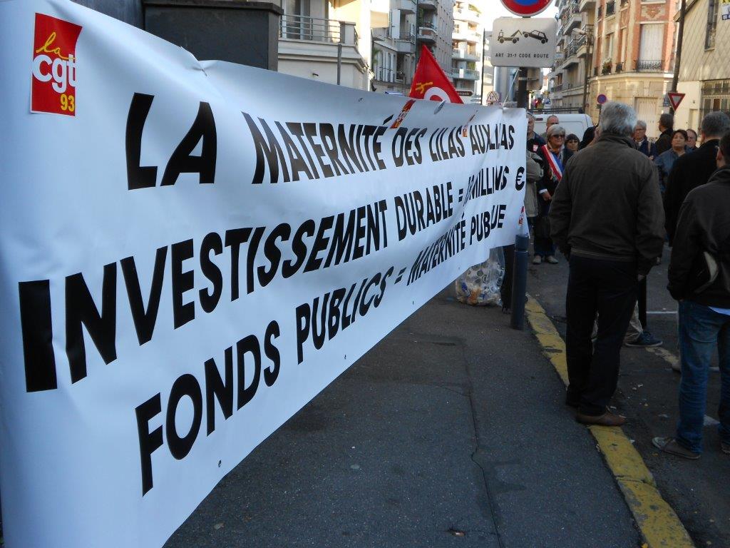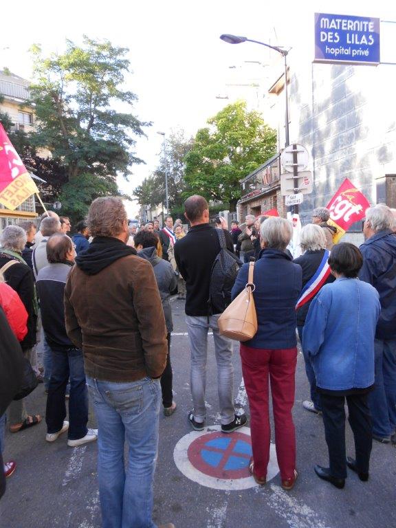 Rassemblement devant la maternité des Lilas, pour demander la tenue d’une table ronde, le 10 septembre 2013. Lire le tract d’appel au rassemblement.